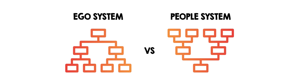 Why? Because traditional org charts aren’t built for growth—they’re built as ego systems. They reinforce hierarchy, status, and the power of climbing upward. The big boss feels powerful at the top. Managers feel accomplished by climbing higher. Everyone else feels stuck at the bottom, waiting for permission to contribute.