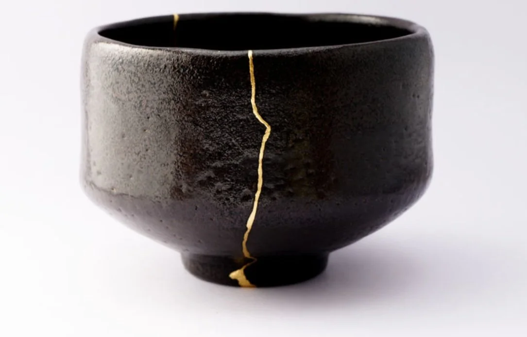 Kintsugi is a centuries-old Japanese art of fixing broken pottery with tree sap that has been infused with gold, silver or platinum powder. The end result is a repaired piece that highlights the broken cracks and creates an object that is even more beautiful and brilliant than the original.